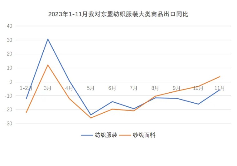 2023年(nián)11月(yuè)我國(guó)紡織服裝出口延續回穩态勢,同比<↓δ下(xià)降1.1%,降幅相(xiàng)較前幾個( ​∑gè)月(yuè)大(dà)幅收窄,環比上(shàng)升3%。對(duì¶×€∞)美(měi)國(guó)出口連續第三個(gè)月(yuè)增長(← ±cháng)。對(duì)東(dōng)€<盟紗線面料出口結束連續7個(gè)月(yuè)下(xià)降态勢,自(zì)今年(nián)4月(•€& yuè)以來(lái)首次轉正,同比上(shàng‌≈)漲3.7%。
